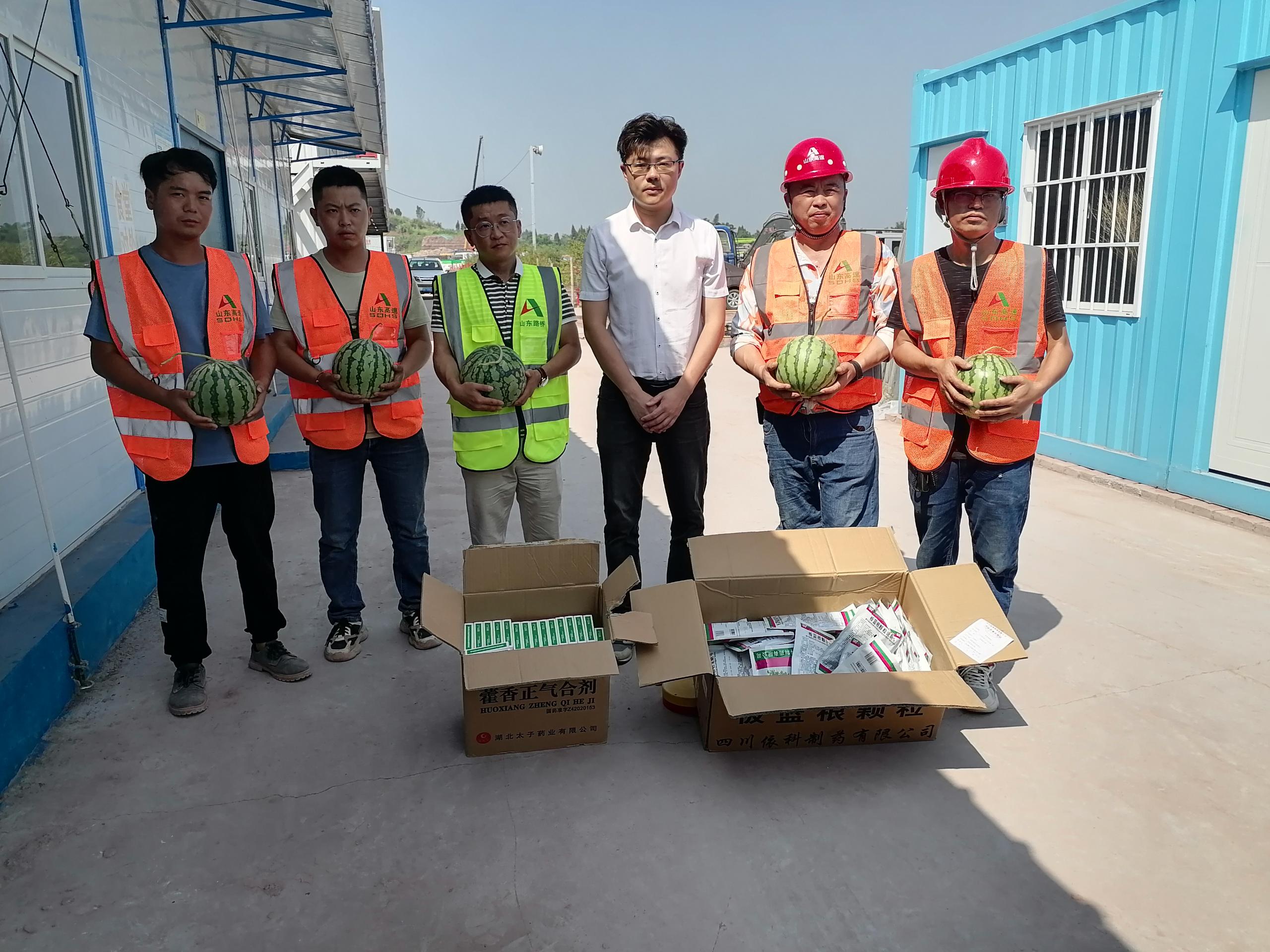 每到一個項目施工現(xiàn)場,周士棠同志都深入一線職工當(dāng)中,與大家親切交談,親自將一個個西瓜,一盒盒防暑藥品發(fā)放到大家手中,細(xì)致詢問大家近期的生活情況和工作情況,實地查看項目進(jìn)展情況。了解到員工在近40攝氏度的酷熱下依舊堅持高溫作業(yè),加班加點(diǎn)堅守施工一線,爭分奪秒比質(zhì)量搶進(jìn)度后,周士棠同志對大家在高溫天氣仍堅守崗位、辛苦勞動付出的精神表示高度肯定與贊揚(yáng)。